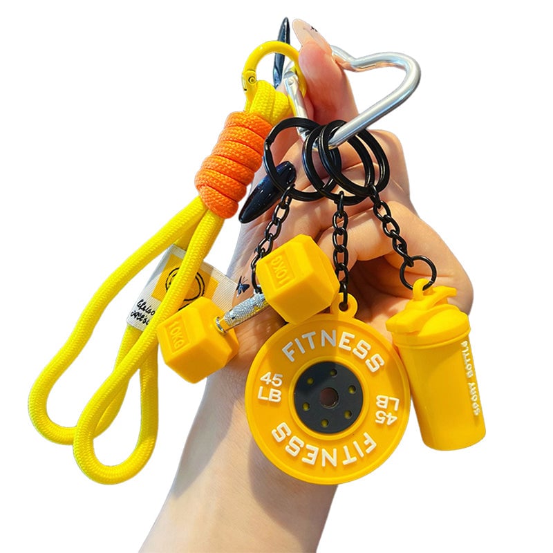 This keychain set features three mini silicone pendants: a dumbbell, kettlebell, and 45LB weight plate. Printed with realistic fitness markings, they add a fun and sporty vibe to your everyday essentials.